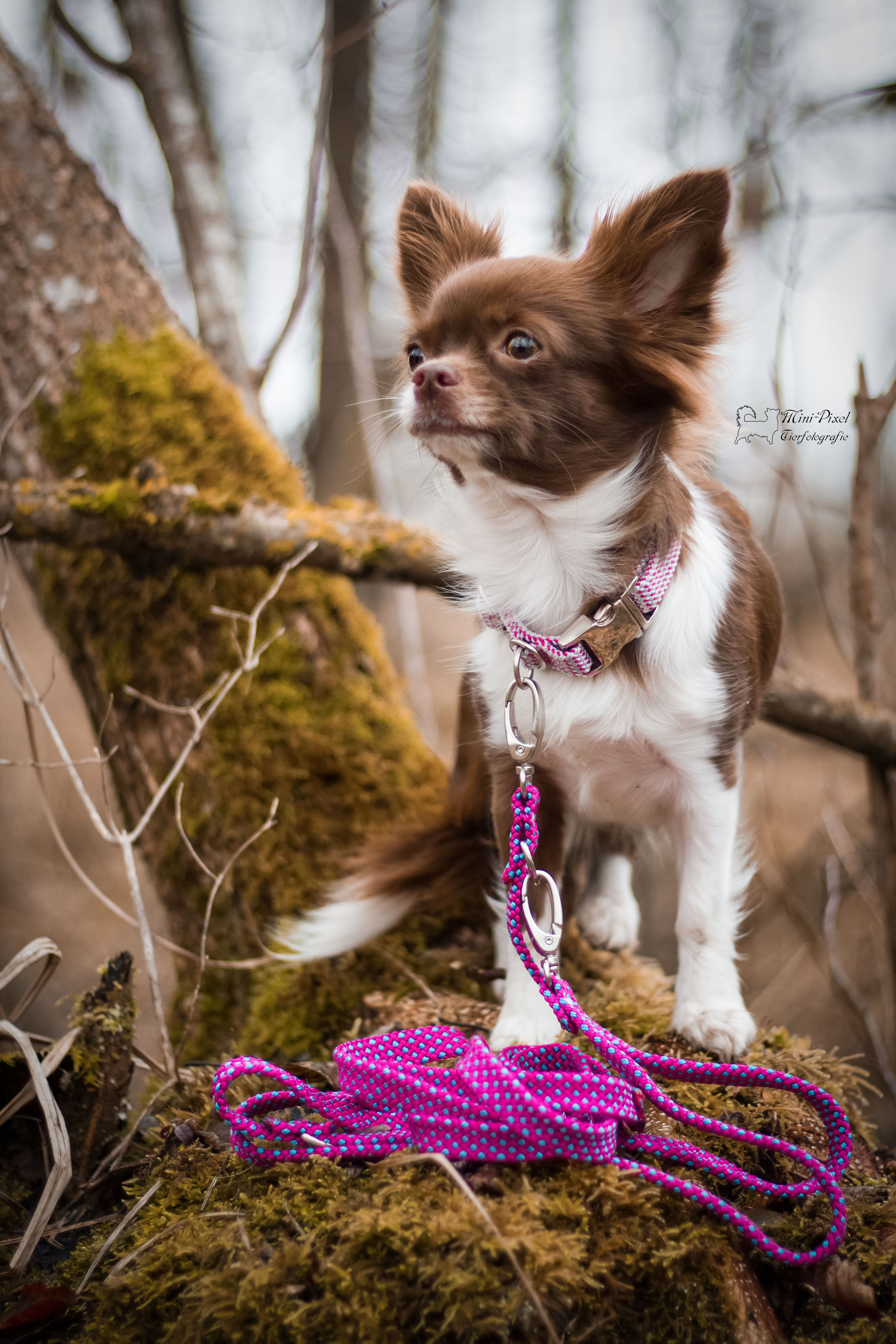 Es ist schwer für die Kleinen passende Halsänder zu finden, die nicht zu klobig wirken und leinen, deren Karabiner die Kleinen nciht direkt erschlägen.